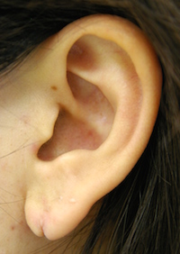 最近ではヨーロッパ的な習慣が広まり、またピアスを着用する際に美しく見えないなどの理由から手術を希望する方が増えましたが、一般に社会生活上著しい不都合があるとは考えられないため、通常は耳介の形の異常は健康保険の対象となりません。