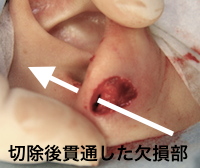 上左で見たのと同じ症例です。一部を強く曲げたために耳輪が波打っています。