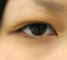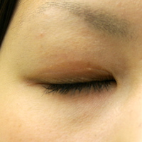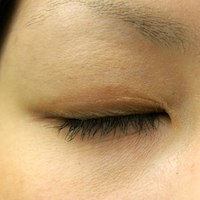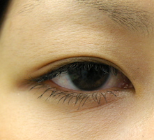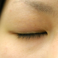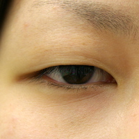 ↓瞼に弛みがある症例:一重瞼ですが瞼が厚く、軽度の眼瞼下垂と皮膚の延長(たるみ)もあるため、本来埋没法には向いていない瞼です。ダウンタイムや費用の問題もあって敢えて埋没法を選択した患者さんの例です。