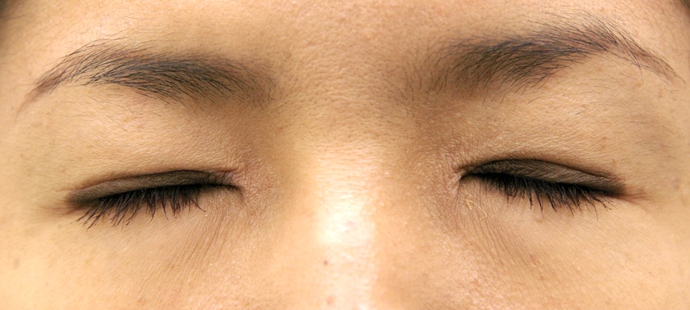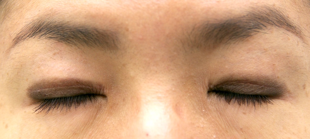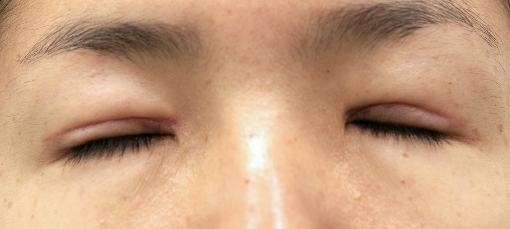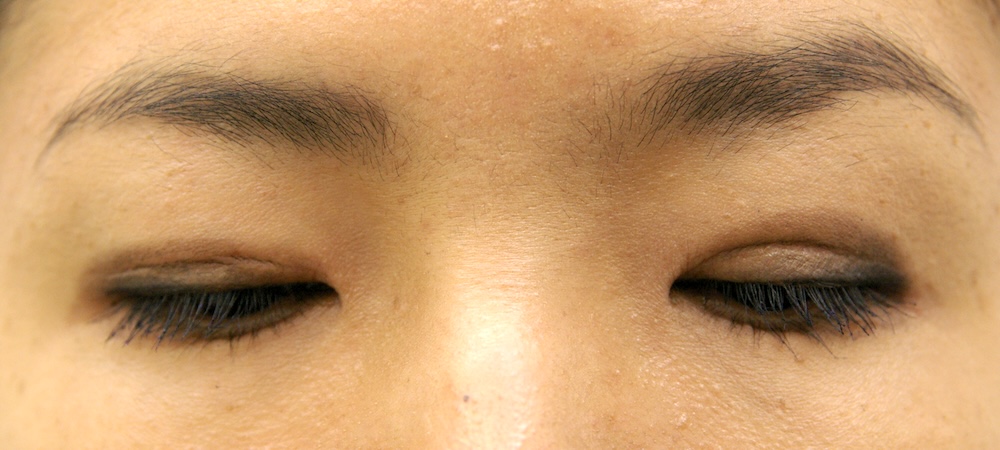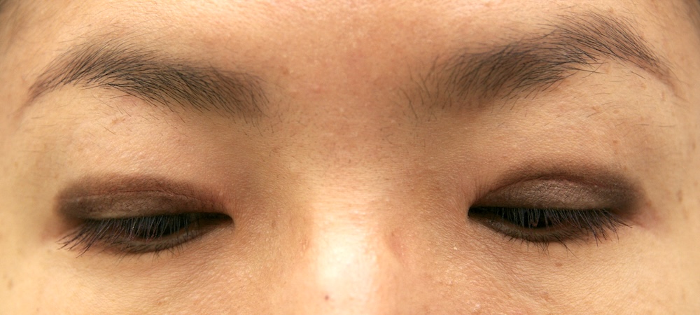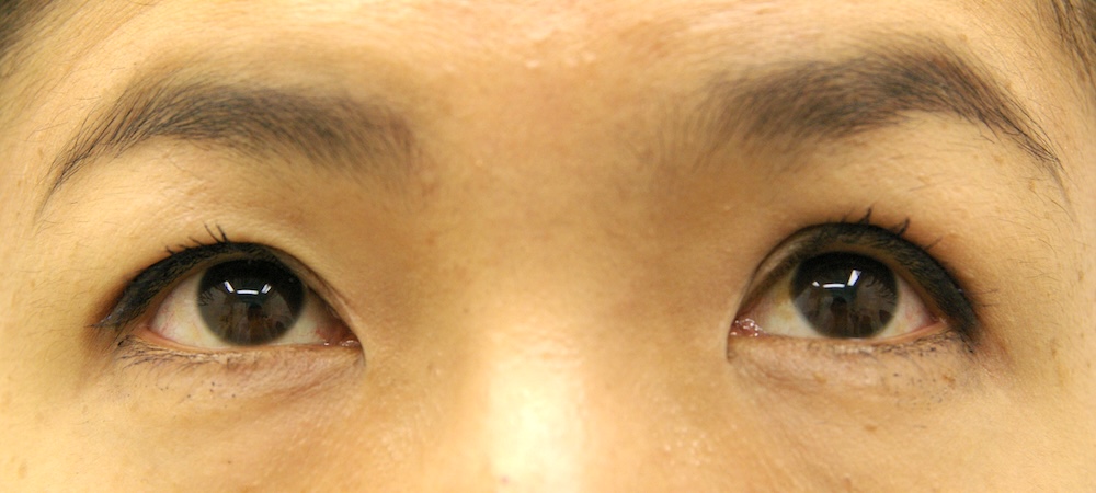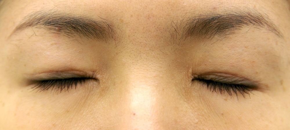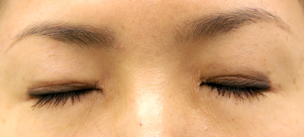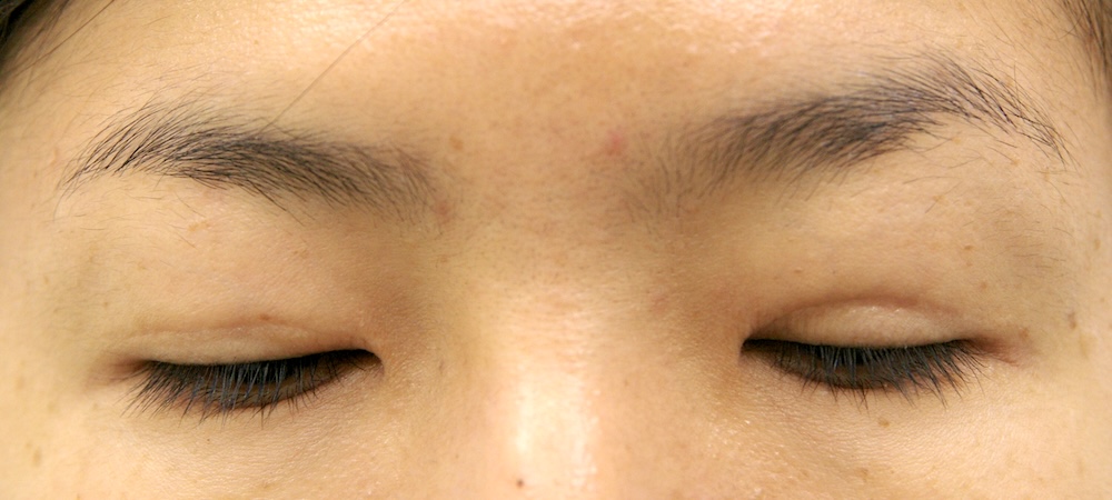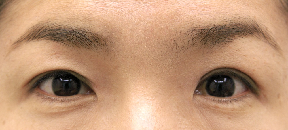 眼瞼下垂症に関しては特に問題なく経過し、眉の左右差もほぼ無くなり快適にお過ごしだったようです。突然生じた左目頭のかぶれに対しては塗り薬と内服薬で治療し、しばらくして全快されました。予想通り右側の皮膚が少し被ってきていましたが、今のところ支障なく切り取る希望もないとのことでした。左側はかぶれているため腫れていて重瞼幅がやや広く見え、傷跡も目立っていますが、皮膚炎が回復するのと並行して柔らかくなっていきました。